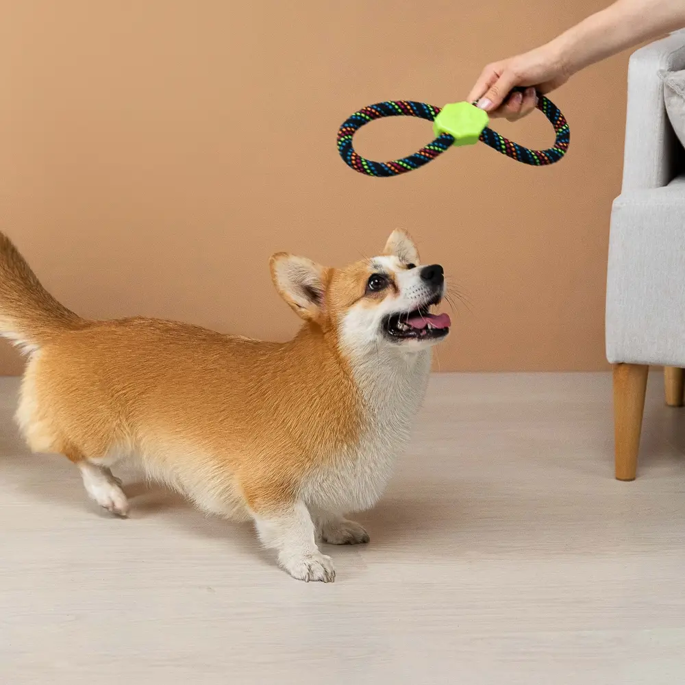 С длиной 30 см, канат удобен для захвата и перетягивания, помогая развивать жевательные мышцы и поддерживать здоровье зубов и десен. Игрушка отлично подходит для активного времяпрепровождения и укрепления связи между вами и вашим питомцем.