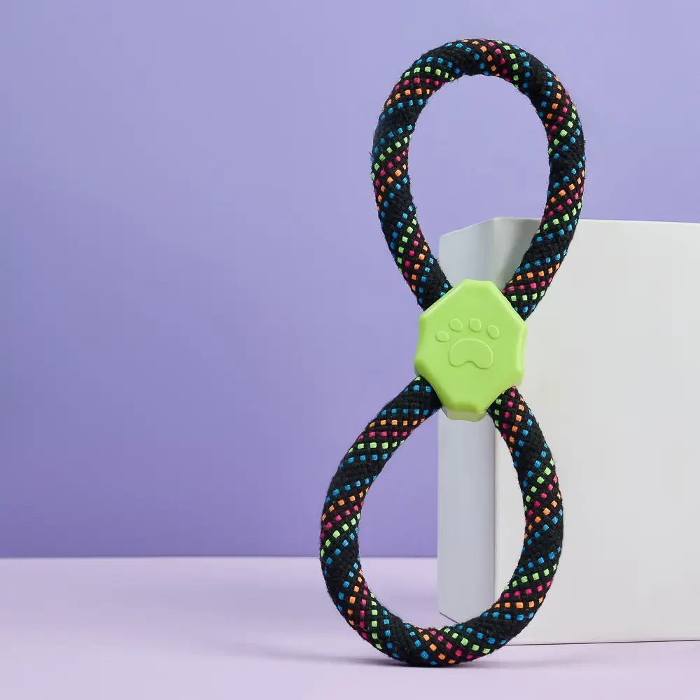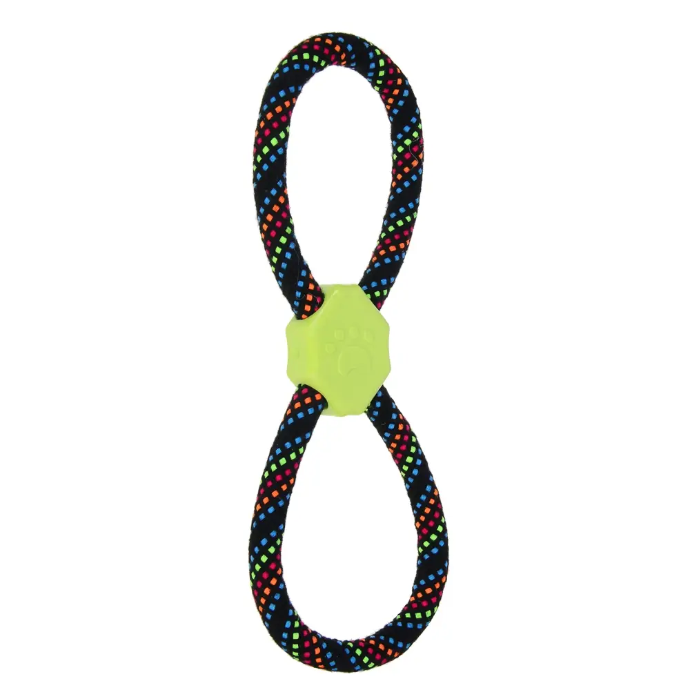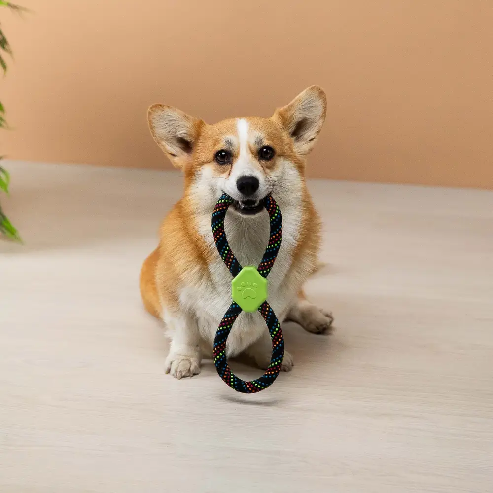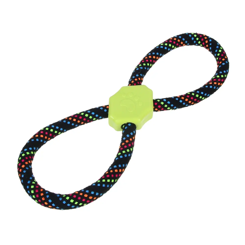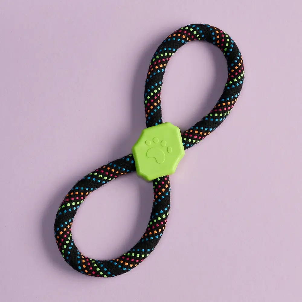 Канат "Восьмерка" – идеальная игрушка для собак средних и крупных пород, предназначенная для тренировок и активных игр. Изготовленная из прочного хлопка и полиэстера, игрушка обеспечивает надежность и долговечность даже при интенсивных играх. Вставка из термопластичной резины (ТПР) добавляет дополнительную прочность и безопасность, а также делает игрушку более привлекательной для вашего питомца.
