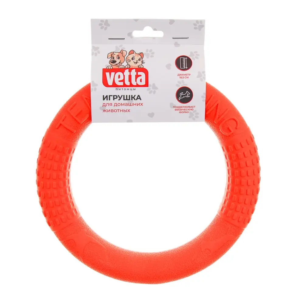 Игрушка для домашних животных пуллер от VETTA, диаметр 18,5 см используется в качестве тренировочного снаряда для собак. Подходит для игр, дрессировки, а также для тренировок и поддержания физической активности у питомца на открытом воздухе. Эластичное кольцо из термопластичной резины не травмирует зубы и десна собаки. Пуллер не рвется, устойчив к проколам и имеет оптимальную твердость. Яркие цвета в ассортименте.