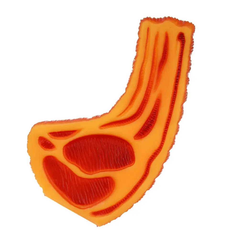 Игрушка для домашних животных VETTA, 15,5х9 см из винила предназначена для собак. Выполнена в форме стейка на кости. Материал имеет высокую плотность, не деформируется под воздействием нагрузок, устойчив к проколам, поэтому игрушка прекрасно подойдет для тренировки челюсти и очищения зубов у собак. Поможет разнообразить активные прогулки с питомцем, а также удобна для воспитания и дрессировки. Легко моется.