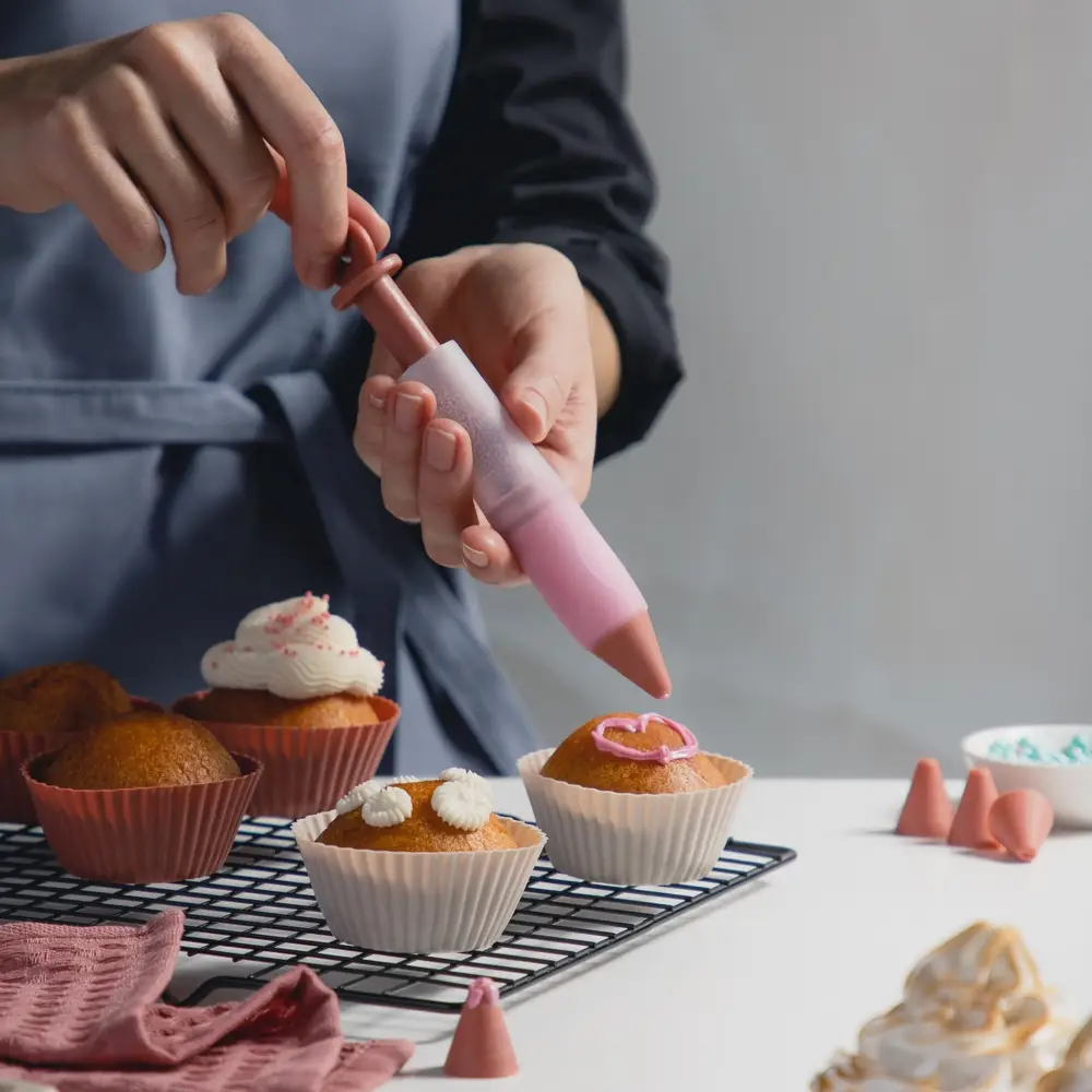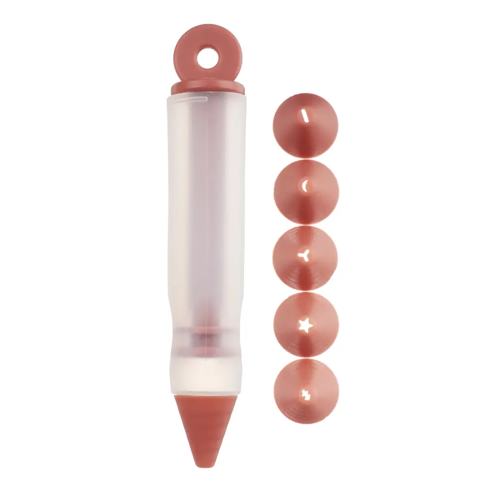Кондитерский карандаш VETTA с шестью насадками из силикона поможет создать самый невероятный декор из крема для кондитерских изделий – тортов, кексов, маффинов и другой сладкой выпечки прямо на домашней кухне. Многоразовый шприц с удобным поршнем постепенно выдавливает крем, позволяя рисовать различные фигуры, надписи и рисунки. Готовый кулинарный шедевр сможет похвастаться не только вкусом, но и эстетикой.