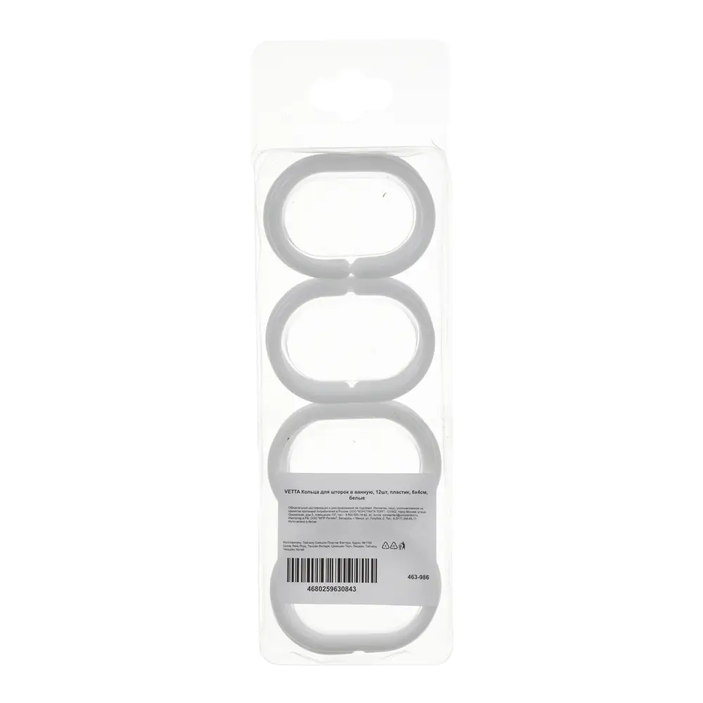 VETTA Кольца для шторок в ванную, 12шт, пластик, 6х4см, белые