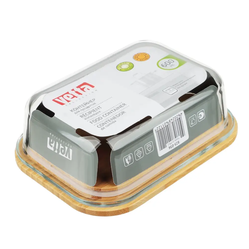 VETTA Контейнер для продуктов 600мл, крышка бамбук, жаропрочное стекло