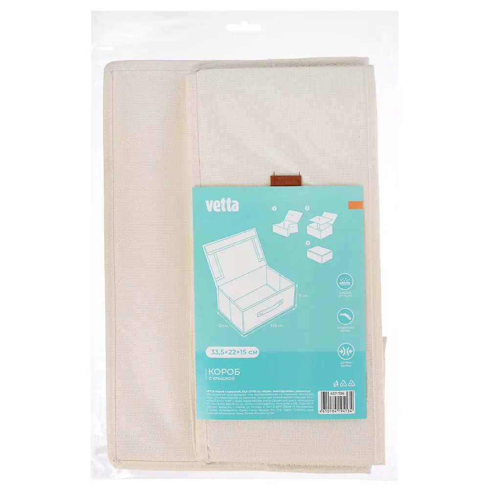 Короб для хранения VETTA Style размером 33,5х22х15 см – это компактный и одновременно вместительный кофр для одежды, который можно также использовать для хранения хозяйственных принадлежностей и игрушек. Имеет жесткие стенки, отлично держит форму. Оснащен надежной крышкой, которая защищает содержимое от пыли, поэтому короб можно хранить в любом месте в доме: внутри шкафа для одежды, на полке, на полу и даже под кроватью. Изделие из полиэстера не теряет вид и не выцветает, имеет оригинальный дизайн, который впишется в интерьер комнаты.