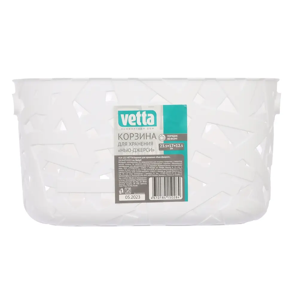 Корзина для хранения VETTA "Нью-Джерси" размером 23,5x17x12,5 см – это вместительный открытый контейнер для хозяйственных мелочей, принадлежностей для рукоделия и других предметов. Оснащен удобными прорубными ручками для переноски. Базовый белый цвет выигрышно смотрится в любом интерьере, а пластиковый корпус не боится влаги, не загрязняется и легко очищается, поэтому изделие не теряет вид на протяжении длительного времени.