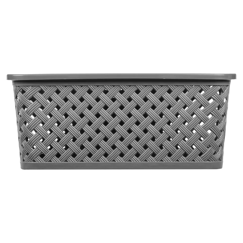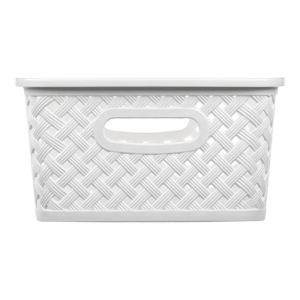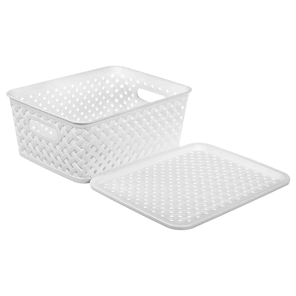 Пластиковая корзинка для хранения мелочей «Сеул» предназначена для косметики, бытовой химии и прочего. Пластик практичен, легко моется, не впитывает запахи, поэтому такую корзинку можно использовать в любой комнате, так как она не боится влаги, сырости, перепадов температуры. Корзинка украсит любую комнату и поможет организовать хранение на открытых полках. Крышка плотно прилегает и надежно удерживает содержимое внутри. Размер 25x20x10 см. В ассортименте 2 цвета.