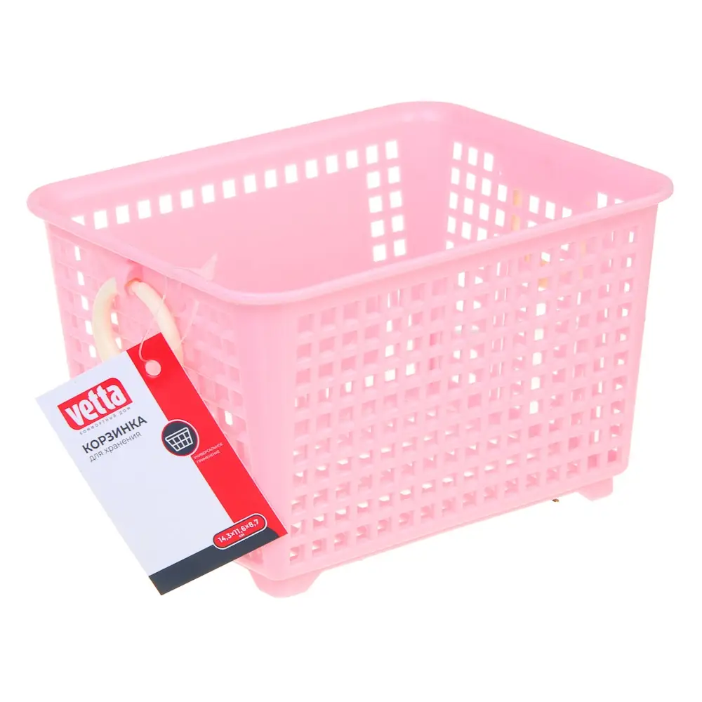 Корзинка для хранения VETTA — идеальный выбор для организации пространства и поддержания порядка. Она имеет размеры 14,3x11,6x8,7 см и выполнена из высококачественного пластика розового цвета. Благодаря своей прямоугольной форме, корзинка идеально подходит для хранения различных предметов, таких как игрушки, косметика, канцелярские принадлежности и многое другое.