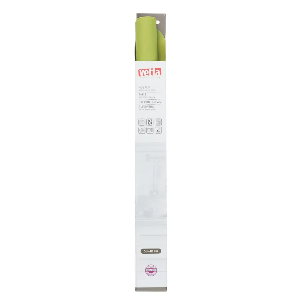 Силиконовый коврик для раскатки теста Vetta исключает прилипание продуктов и выдерживает высокие температуры. Ключевая задача — создать антипригарную защиту между дном посуды и выпечкой. К тому же благодаря такому коврику вам не придется долго мыть противень. А еще на нем удобно раскатывать тесто. Не нужно использовать бесчисленное количество муки, чтобы предотвратить прилипание кондитерской массы. Силикон спасает от таких неприятностей. Не впитывает запахи ингредиентов и сам не выделяет вредных веществ. Абсолютно гигиеничный и экологически чистый аксессуар для вашей кухни.