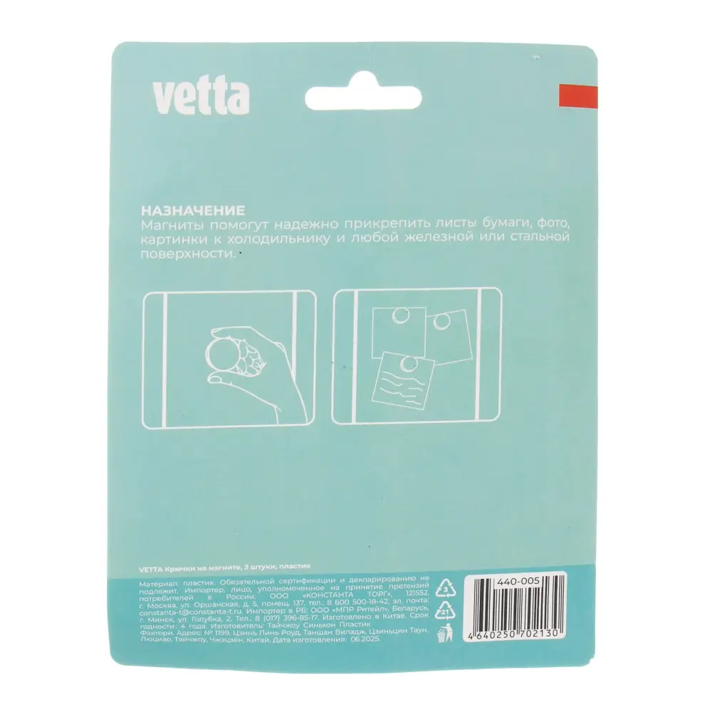 Крючок на магните VETTA предназначен для крепления на металлические поверхности. Для установки не нужно сверлить стены, наносить клей, достаточно просто приложить основание крючка к металлу. Магнит обеспечивает надежное сцепление с ровной поверхностью. Крючок имеет лаконичный дизайн, поэтому будет гармонично смотреться в любом интерьере. В упаковке 3 изделия.