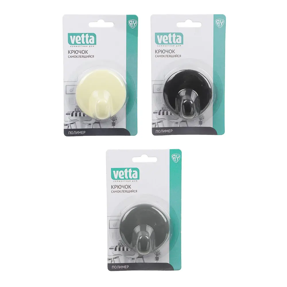 VETTA Крючок, прорезиненное покрытие, полимер, 3 цвета