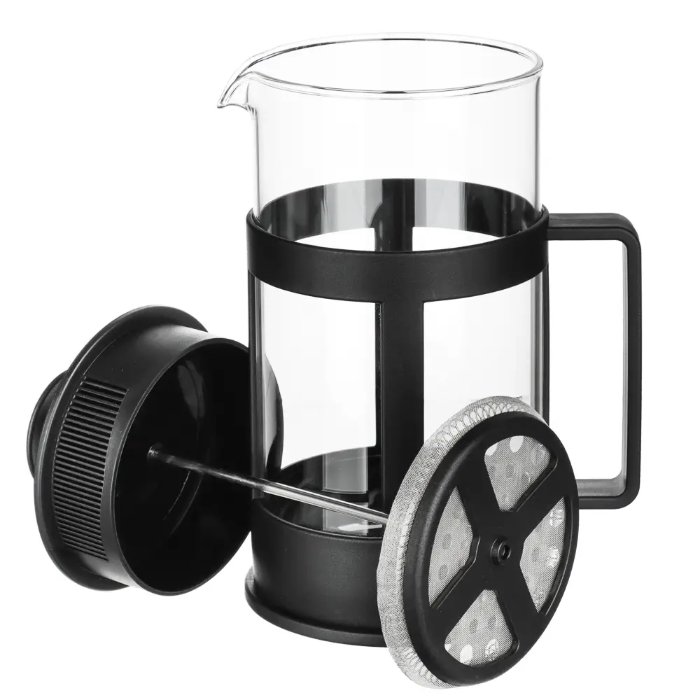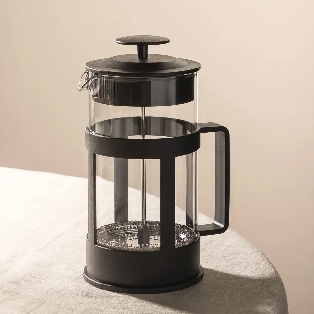 Френч-пресс VETTA "Мелана" 1 л — идеальное решение для ценителей насыщенного кофе. Объём рассчитан на 4-5 порций, что делает его отличным выбором для семьи или компании. Колба из жаропрочного стекла устойчива к термическим нагрузкам и выдерживает нагрев до 200°C, сохраняя тепло и аромат напитка. Фильтр-поршень из нержавеющей стали обеспечивает герметичное прилегание и эффективное отделение кофейной гущи. Устройство легко разбирается и моется в посудомоечной машине. Эргономичный дизайн сочетает в себе лаконичность и практичность для ежедневного использования.