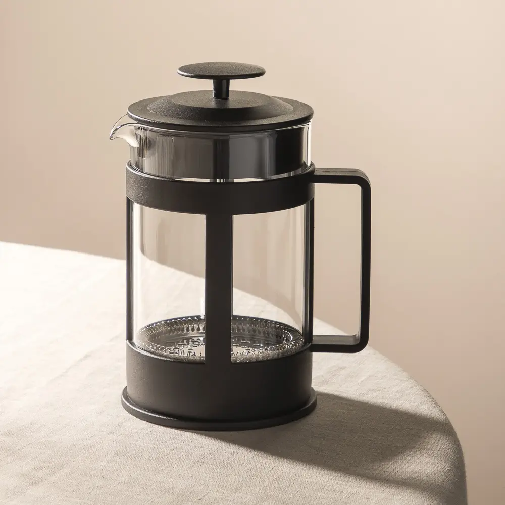 Френч-пресс VETTA "Мелана" 800 мл — идеальное решение для ценителей насыщенного кофе. Объём 800 мл рассчитан на 3-4 порции, что делает его отличным выбором для семьи или небольшой компании. Колба из жаропрочного стекла устойчива к термическим нагрузкам и выдерживает нагрев до 200°C, сохраняя тепло и аромат напитка. Фильтр-поршень из нержавеющей стали обеспечивает герметичное прилегание и эффективное отделение кофейной гущи. Устройство легко разбирается и моется в посудомоечной машине. Эргономичный дизайн сочетает в себе лаконичность и практичность для ежедневного использования.
