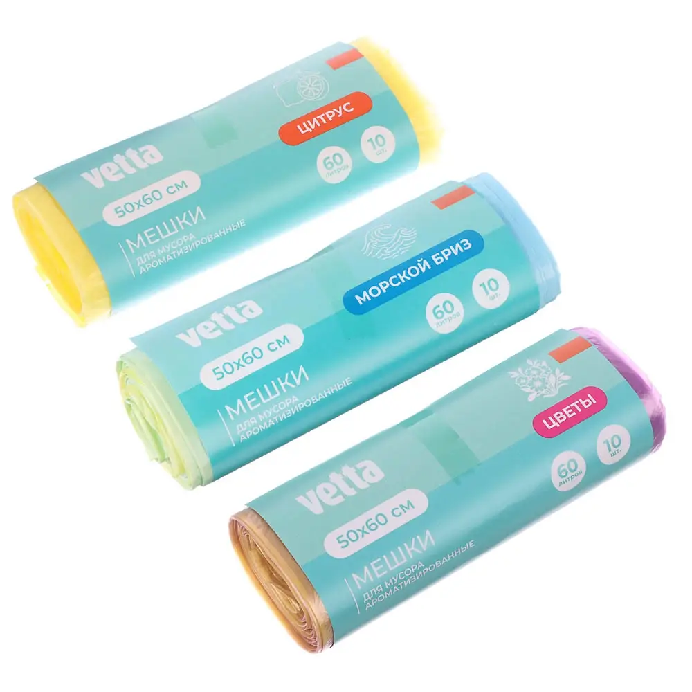 Ароматизированные мусорные мешки Vetta 60 л – инновация в сфере уборки. Изделия обладают приятным ароматом, поэтому вы навсегда забудете о плохих запахах на кухне. Мешки для мусора применяются в быту и на производстве для утилизации мелких отходов и соблюдения санитарно-гигиенических норм. Внимание! Товары представлены в ассортименте, выбор цветов или моделей не предоставляется. На фотографиях могут быть представлены не все варианты.