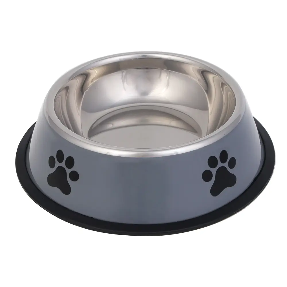 Миска для домашних животных VETTA из нержавеющей стали, 22х6 см, объем 500 мл – это посуда для собак любых пород и возрастов. Может использоваться как для корма, так и для воды. Имеет устойчивое основание, не опрокидывается. Качественная нержавеющая сталь не подвержена коррозии, не накапливает запахи и микробы, что делает изделие абсолютно безопасным для питомца. Не боится падений и механических воздействий. Привлекательный дизайн с рисунком в виде лапок в белом или сером цвете впишется в любой интерьер.