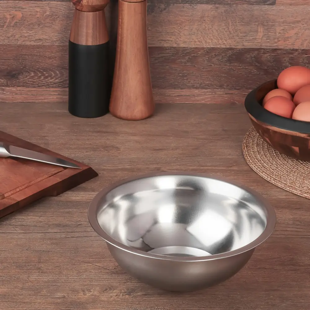 Глубокая миска VETTA объемом 1 л и диаметром 20 см — идеальный выбор для приготовления салатов, замешивания теста и других кулинарных задач. Изготовлена из высококачественной нержавеющей стали, которая устойчива к механическим повреждениям и высоким температурам. Миска имеет глубокую форму для удобства перемешивания и взбивания, а также стильный стальной цвет, который впишется в любую кухню. Благодаря компактным размерам миску легко переносить и хранить. Идеальный выбор для любителей готовить дома!