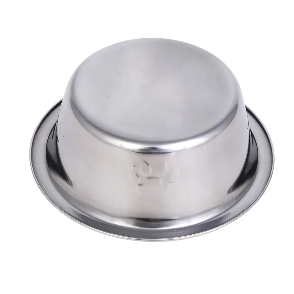 Прочная и гигиеничная миска для кормления домашних животных, изготовленная из высококачественной пищевой нержавеющей стали. Компактные размеры (диаметр 13 см, высота 4,5 см) и объем 350 мл идеально подходят для ежедневного использования кошками и собаками мелких пород. Особенности конструкции включают антискользящее резиновое кольцо на дне, обеспечивающее устойчивость во время кормления, и аккуратно загнутые края для безопасности питомца. Материал обладает высокой устойчивостью к коррозии, не впитывает запахи и легко моется как вручную, так и в посудомоечной машине.