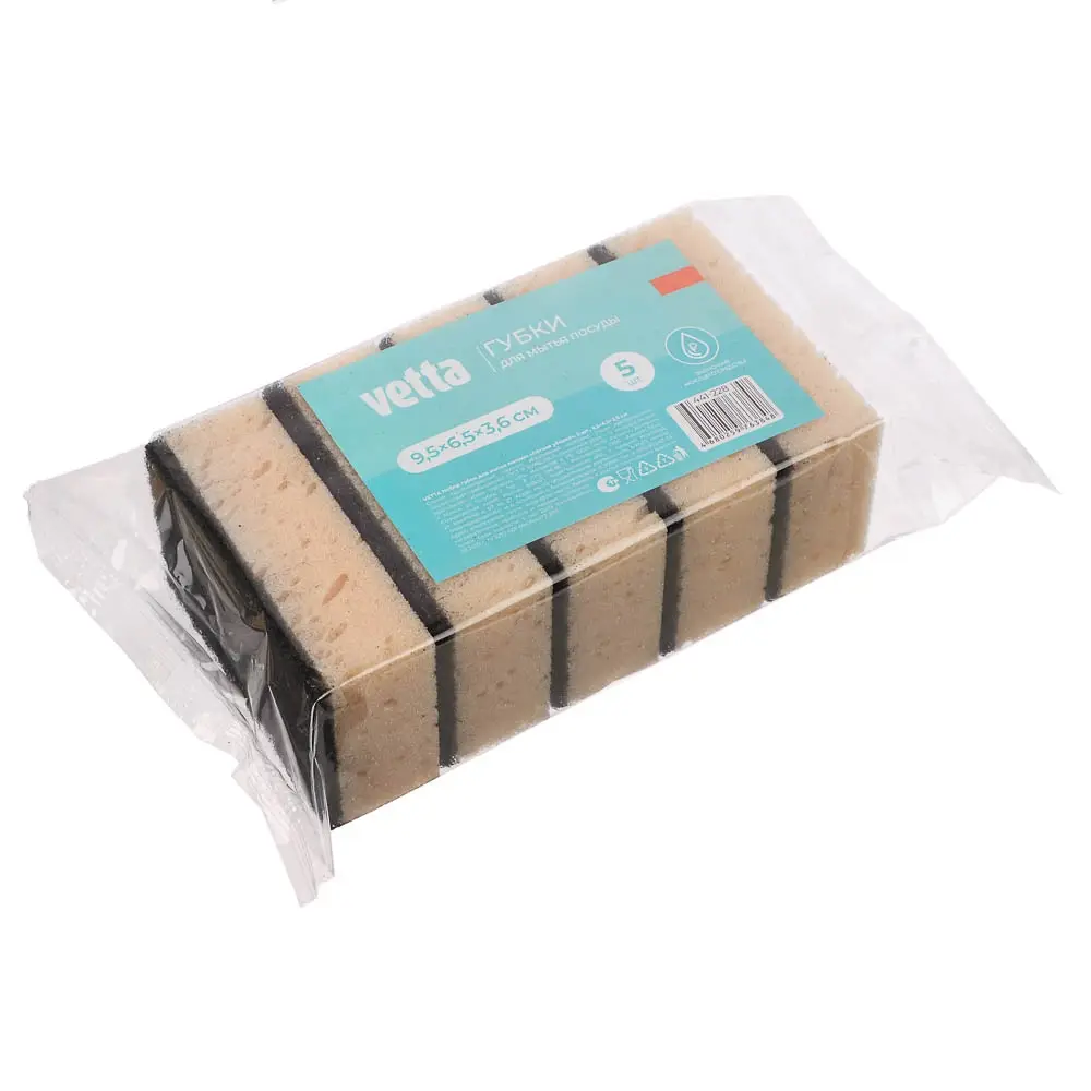 VETTA Набор губок для мытья посуды Лёгкая уборка, 5 шт, 9,5x6,5x3,6 см