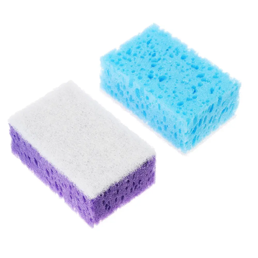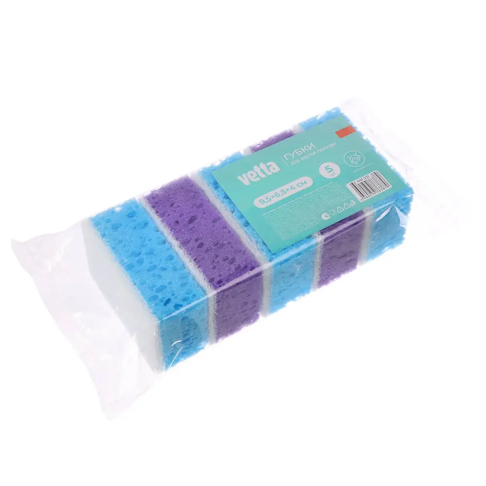 Губки выполнены из крупнопористого поролона, что обеспечивает обильное пенообразование. Благодаря структуре изделия остатки еды и жир легко вымываются. Абразивный слой поможет отмыть сильные загрязнения.