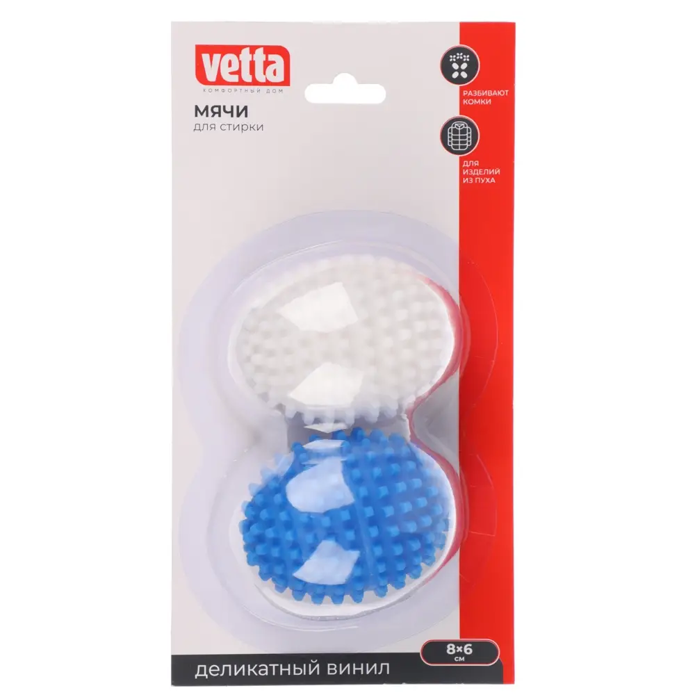 Устали каждый раз относить пуховики в химчистку? Больше вам этого не потребуется. Набор мячей для стирки и сушки белья Vetta обеспечит профессиональный уход за пуховыми вещами в процессе машинной стирки и сушки. Мячи хорошо держат форму и не деформируются на любом режиме стирки и сушки, разбивают комки, смягчают белье, улучшают качество стирки и сокращают время сушки. Также подходят для вещей с синтепоновым наполнителем.
