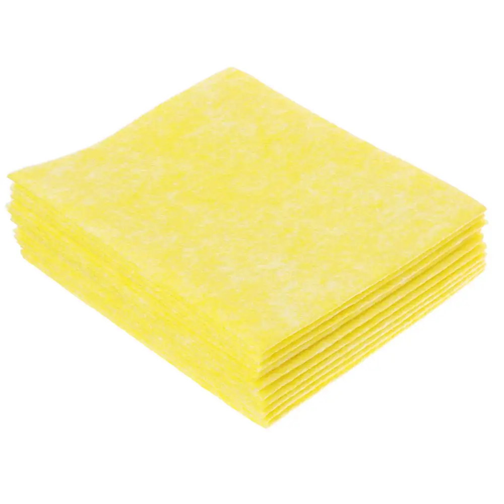 Салфетки из вискозы обладают очень высокой впитывающей способностью. Применяются для уборки на кухне, в ванной комнате, а также там, где требуется устранить большое количество влаги. Для достижения гигиеничности можно часто стирать при t=95C. Салфетки изготовлены из регенерированной целлюлозы, армированы внутри прочной нитью и поэтому долго служат. Не оставляет ворсинок.