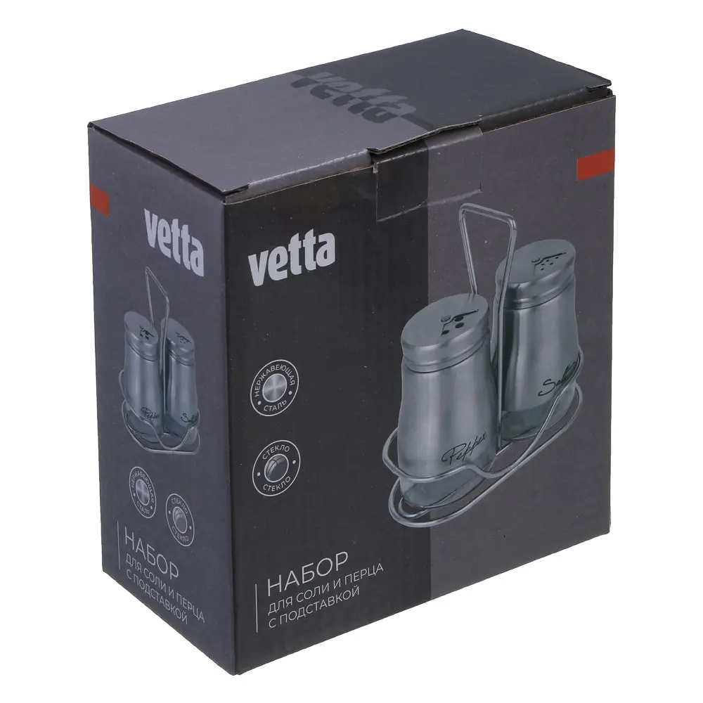 Набор VETTA состоит из двух солонок, выполненных из нержавеющей стали и стекла, а также подставки для них. Солонки имеют форму цилиндра с закругленными краями и крышкой, которая плотно закрывается для сохранения свежести соли. Набор станет не только функциональным элементом на вашей кухне, но и стильным аксессуаром, который украсит любой стол.