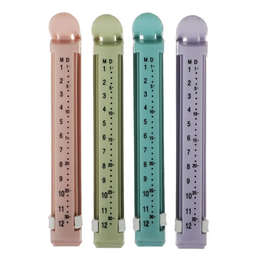 Набор зажимов для пакетов с датами поможет дольше сохранить свежесть продуктов и избежать случайного рассыпания содержимого из открытых пакетов.