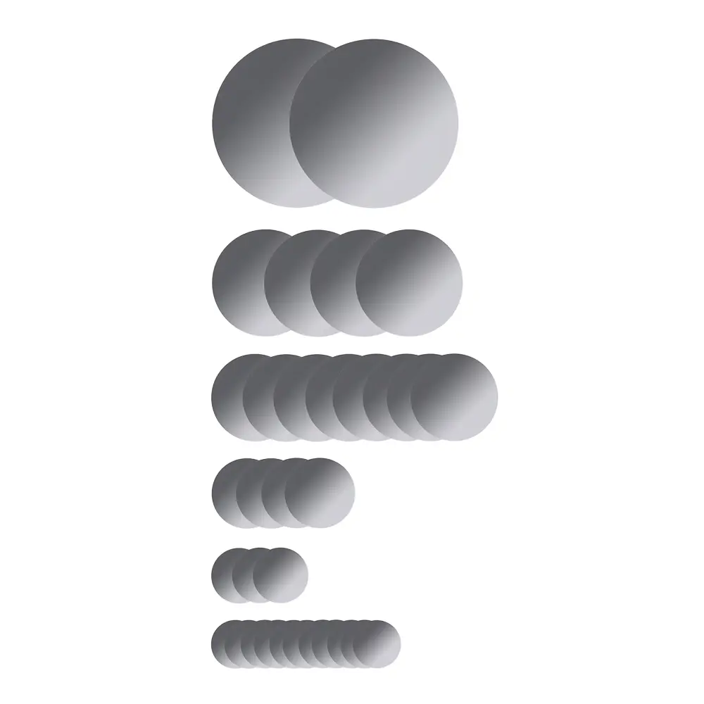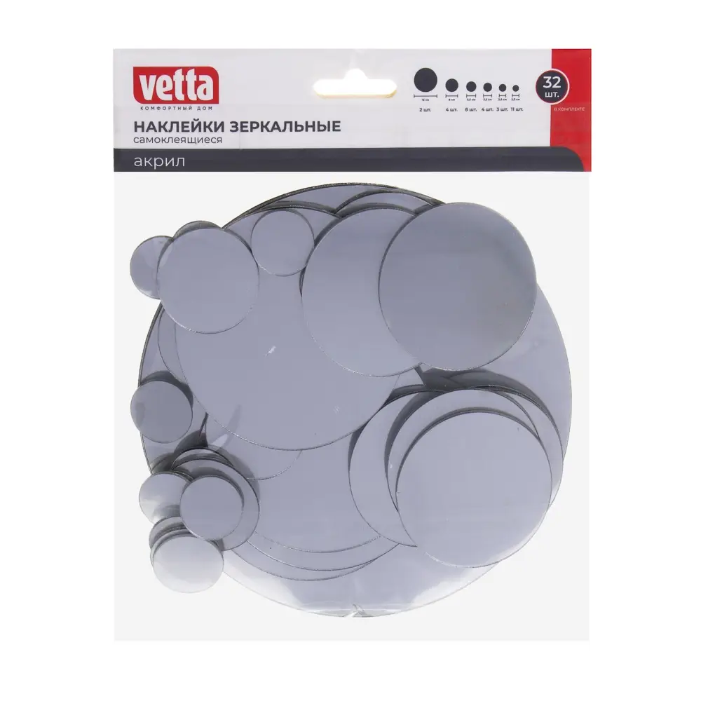 Круглые зеркальные наклейки VETTA — идеальное решение для тех, кто хочет быстро и легко обновить интерьер. В наборе представлены 32 стильных элемента разных размеров, выполненных из качественного акрила. Благодаря самоклеящейся основе, наклейки надёжно фиксируются на любых гладких поверхностях, включая кафельную плитку. Декоративные элементы помогут разнообразить дизайн комнаты, добавить недостающие детали и создать неповторимый стиль. Кроме того, они станут отличным полем для творчества, позволяя воплотить самые смелые дизайнерские идеи.