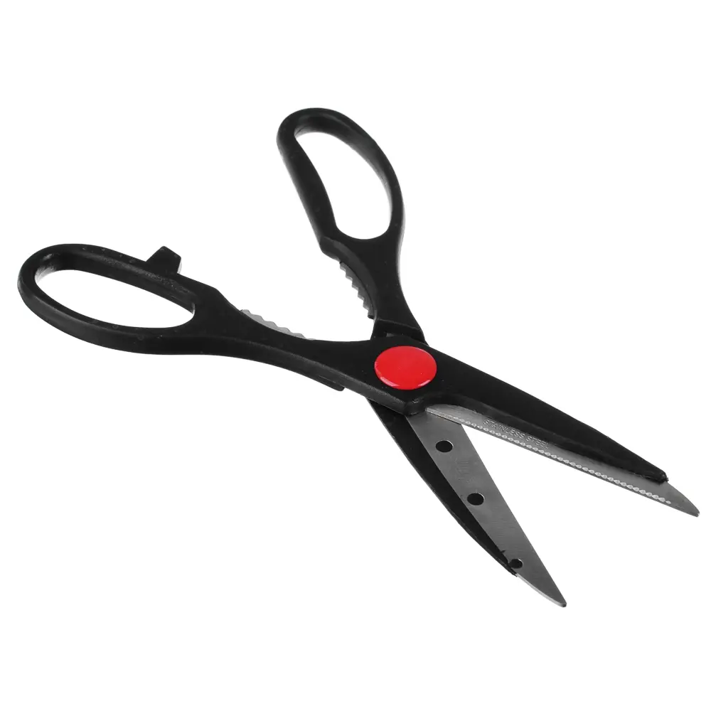 Универсальные кухонные ножницы всегда необходимы для разделки готовой курицы, вскрытия упаковок, чистки рыбы и др. Также ножницы имеют функцию раскалывания орехов.