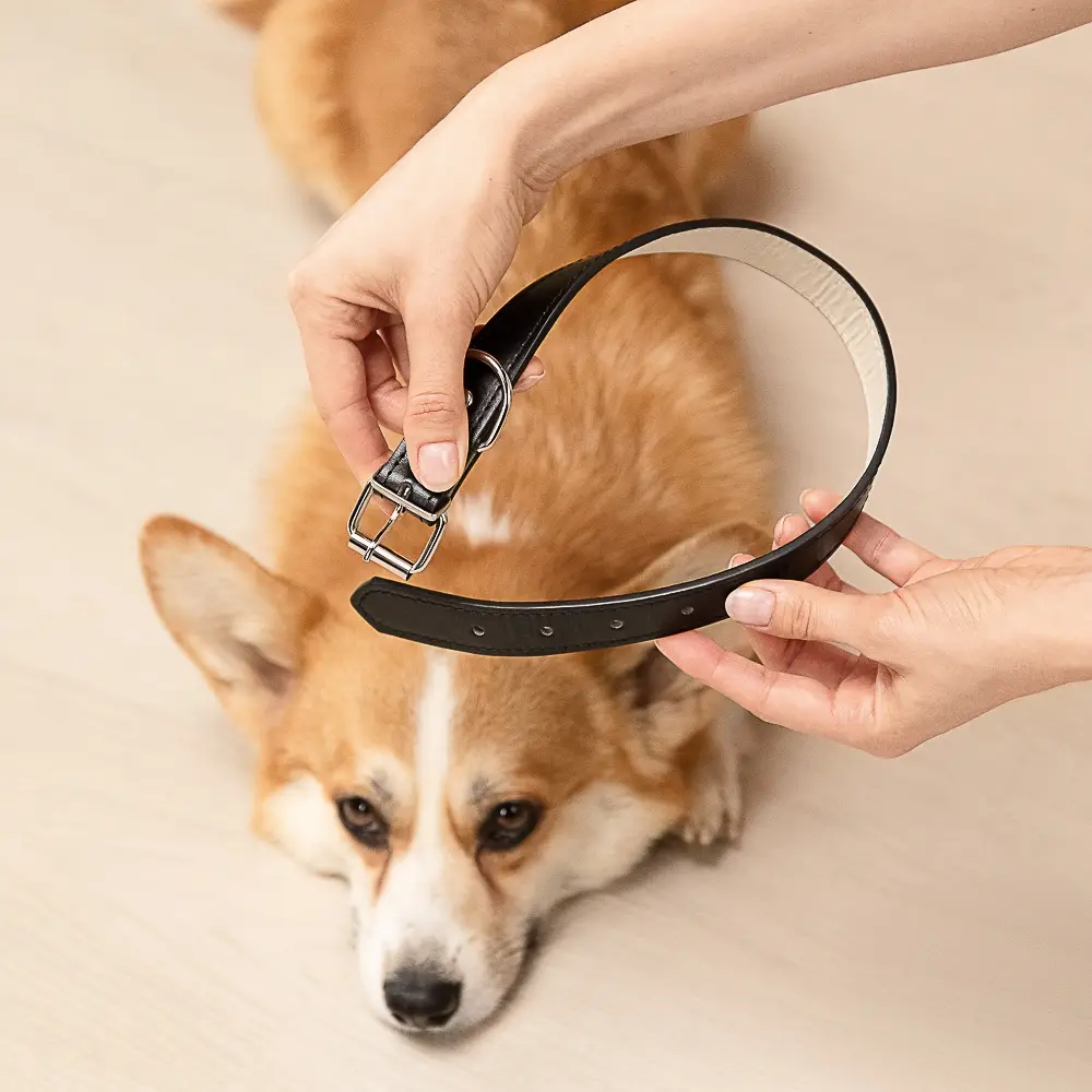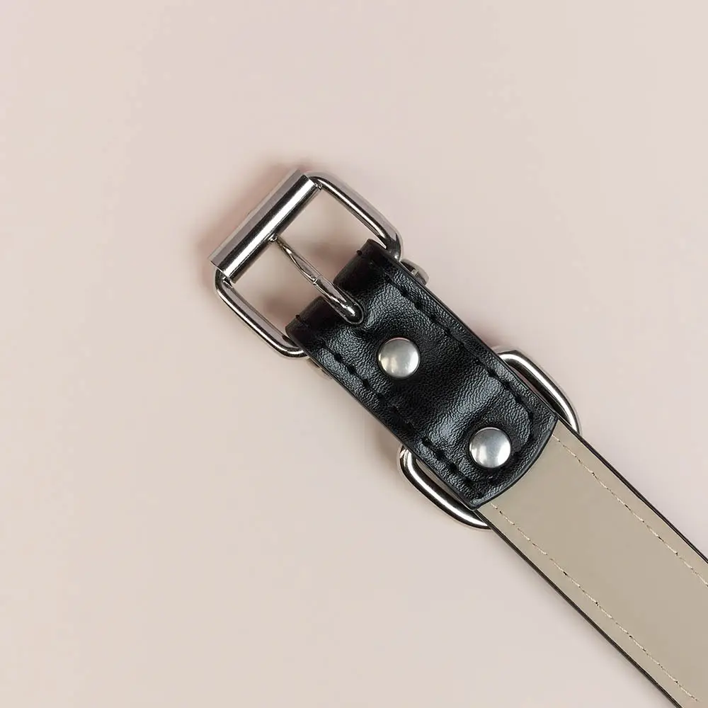 Стильный ошейник VETTA из искусственной кожи черного цвета станет практичным аксессуаром для вашего питомца. Регулируемый размер (обхват 35,5–45,5 см) позволяет удобно подогнать изделие под шею животного, обеспечивая комфорт и безопасность. Ширина 2,5 см оптимальна для среднего и крупного размера питомцев. Прочное металлическое полукольцо предназначено для надежного крепления поводка, а фурнитура отличается долговечностью и устойчивостью к нагрузкам. Изюминкой дизайна является бубенчик, который не только добавляет элегантности, но и помогает всегда слышать, где находится ваш питомец. Отличный выбор для повседневных прогулок и активности!