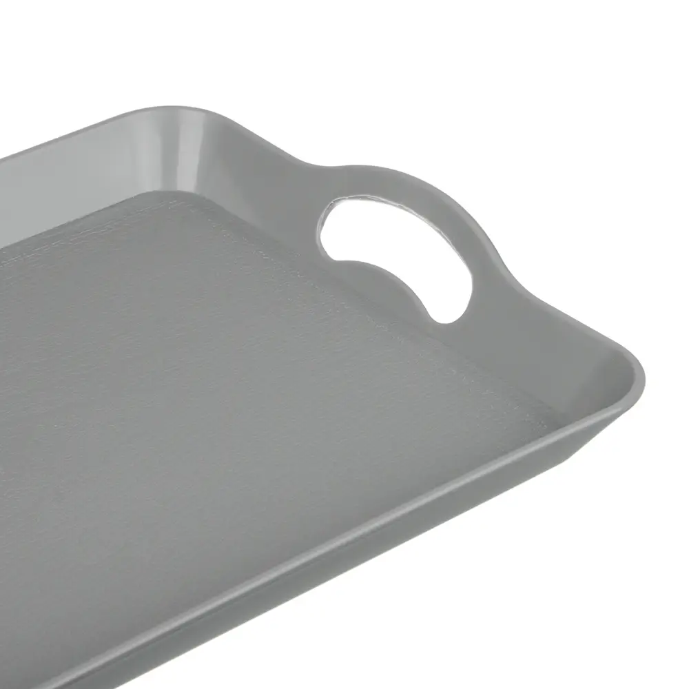 Пластиковый прямоугольный поднос VETTA 41x28x3 см станет незаменимым помощников в вашем доме. Удобен для подачи блюд на праздничный стол, для организации сервировки и быстрой уборки грязной посуды со стола. Может также использоваться в качестве подставки под посуду. Шероховатое покрытие исключает скольжение посуды по подносу, наличие бортиков снижает риск опрокидывания чашек и стаканов, а удобные широкие ручки обеспечивают комфортный хват. Легкий и прочный пластик устойчив к нагрузкам и образованию трещин. Универсальное решение для домашней кухни, кафе, пикников, фуршетов и праздников.