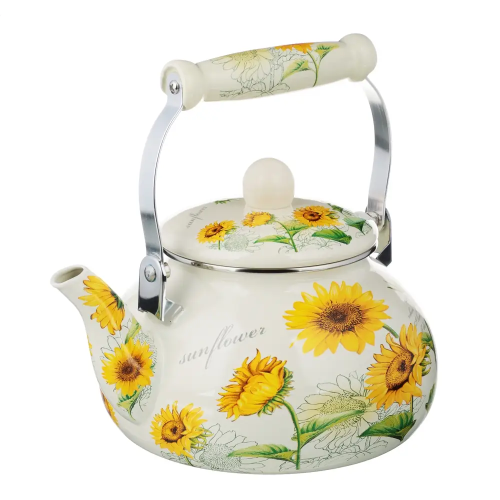 Нужна безопасная, качественная и красивая посуда для кухни? Эмалированный чайник Vetta «Подсолнухи» отвечает всем заявленным критериям. Идеально гладкая поверхность легко очищается от загрязнений, исключает размножение бактерий.