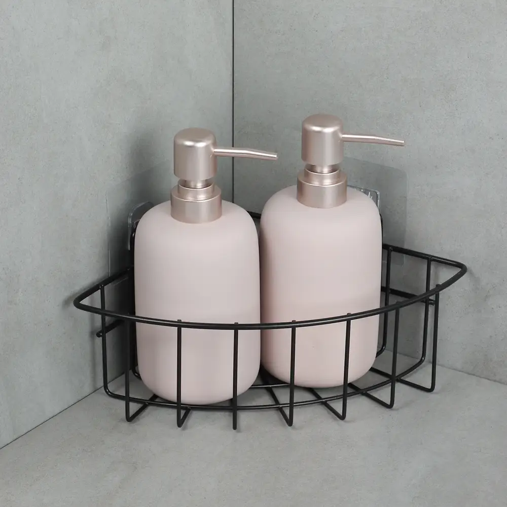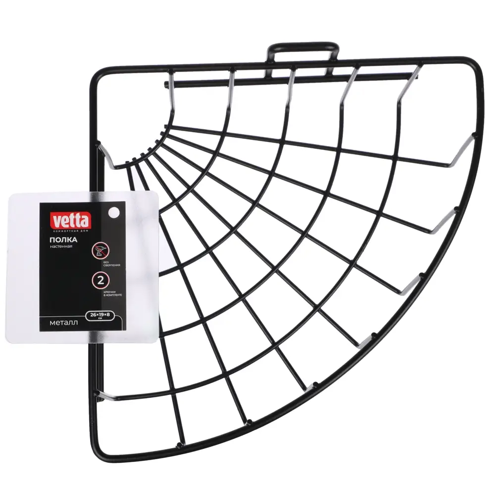 Угловая полка VETTA — прекрасный вариант для ванной комнаты! Изготовлена из прочного металла в элегантном чёрном цвете. Благодаря своим размерам 26x19x8 см она прекрасно дополняет интерьер и обеспечивает удобное размещение разных вещей. Самоклеящаяся конструкция облегчает установку и гарантирует надёжное крепление к стене, предотвращая скольжение и падение.