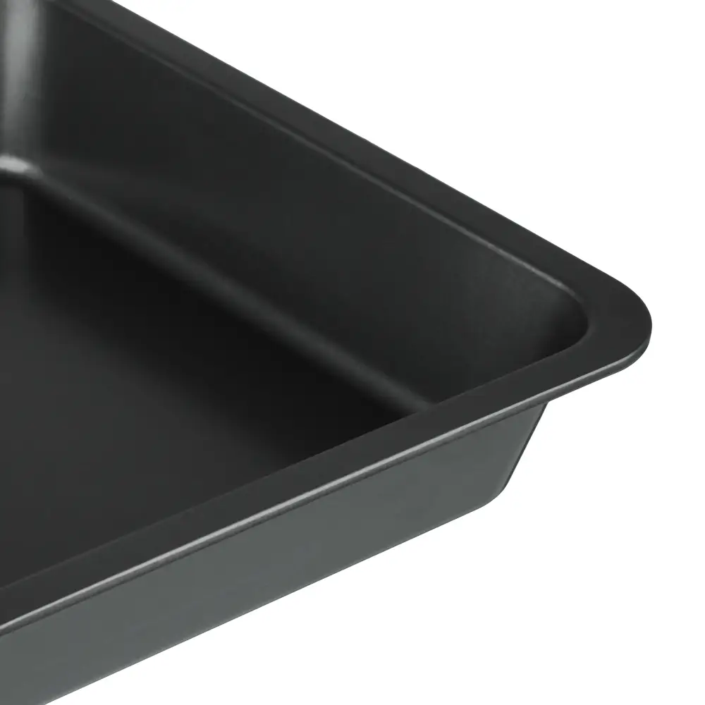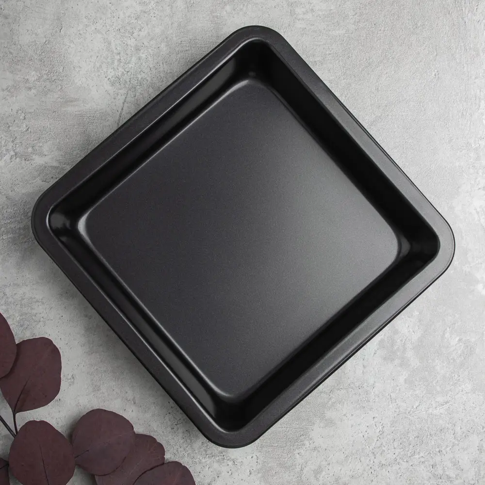 Противень квадратный размером 22.5х4,5 см изготовлена из углеродистой стали, с 2-х слойным антипригарным покрытием изнутри и снаружи предназначена для использования в духовых шкафах.