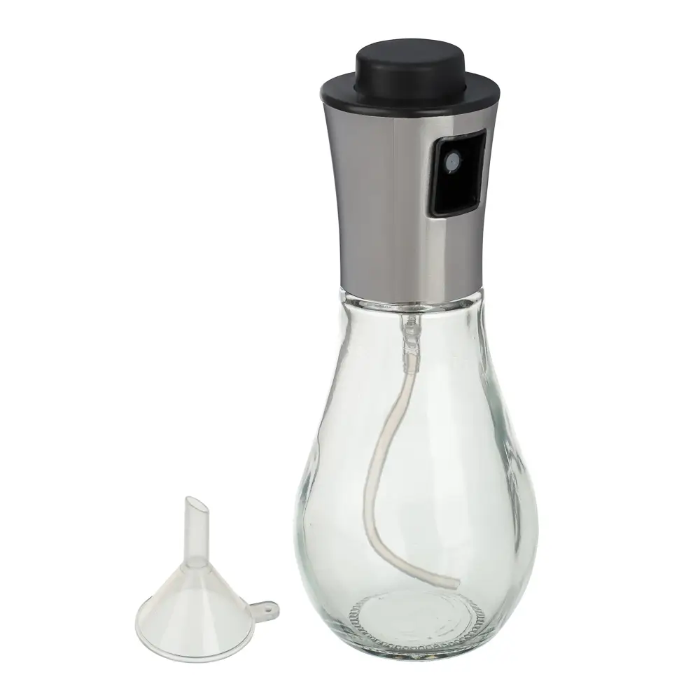 Распылитель для масла и уксуса VETTA 17,5х7 см из прозрачного стекла и нержавеющей стали объемом 320 мл – это удобный аксессуар, который позволит точно дозировать количество масла или уксуса при добавлении в салаты, гарниры и готовые блюда. Незаменим для тех, кто придерживается здорового питания. Оснащен нажимным дозатором. Трубка для подачи масла касается дна емкости, что позволяет расходовать содержимое до последней капли. Распылитель разборный, легко моется. Прозрачная колба позволяет контролировать количество содержимого. В комплекте имеется воронка для удобства наполнения емкости. Универсальный дизайн будет выигрышно смотреться на любой кухне.