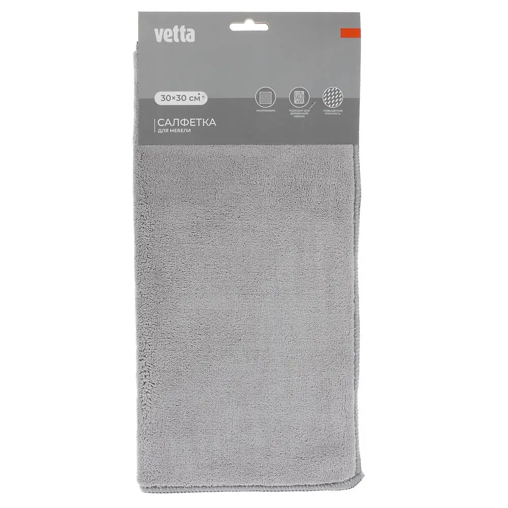 VETTA Салфетка из микрофибры супервпитывающая, для мебели 30х30см, 330 г/кв.м., 2 цвета