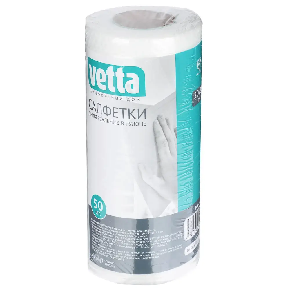 VETTA Салфетки универсальные 50 шт.в рулоне, 20x25 см., спанлейс