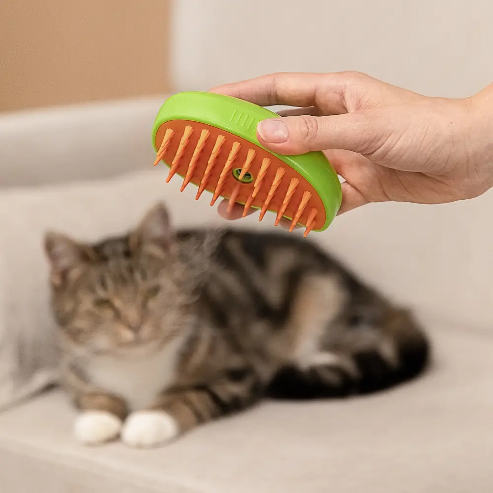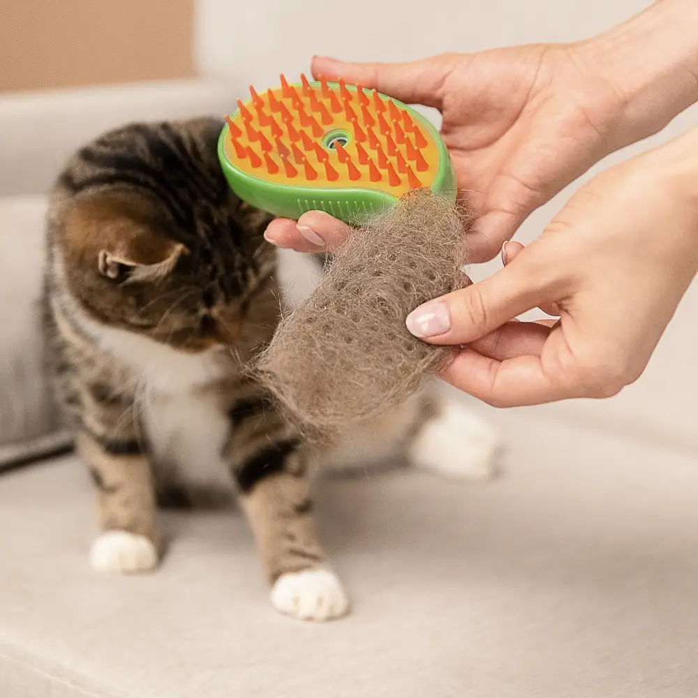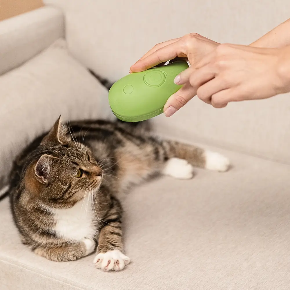 Щетка для домашних животных VETTA, 11,5х6,5 см из ABS-пластика с силиконовой щетиной мягко и деликатно удаляет подшерсток и распутывает спутавшиеся волоски. А также используется для очищения шерсти и массажа. Очищение шерсти производится путем воздействия безопасного холодного пара. Все, что нужно сделать – это залить воду в отверстие и нажать кнопку подачи пара. Такая процедура понравится питомцу, шерсть будет выглядеть здоровой и ухоженной. Холодный пар эффективно удаляет загрязнения и аллергены. Подходит как для кошек, так и для собак. Тип питания – USB.