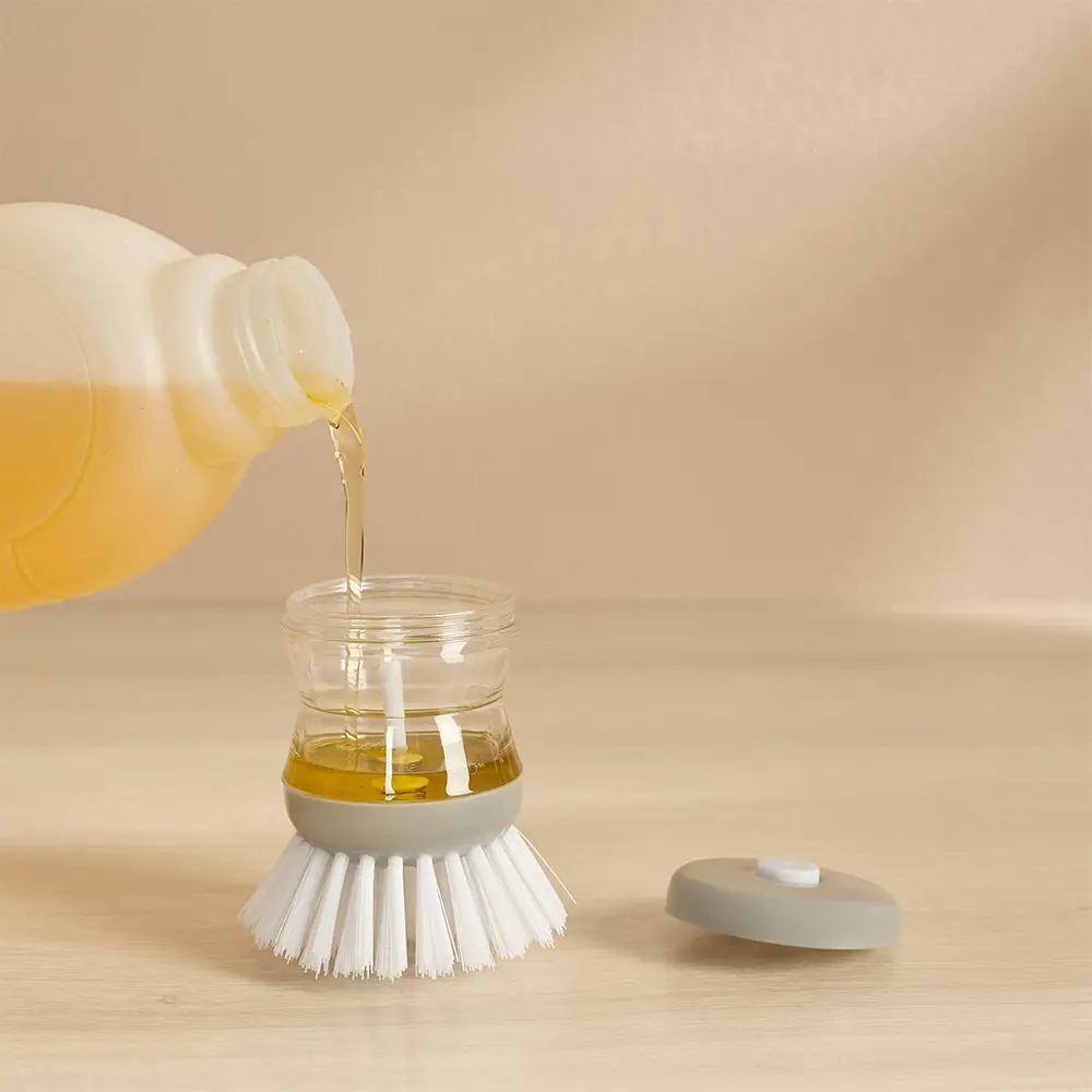 Щетка с дозатором моющего средства для мытья посуды — новая любимица среди хозяек всего мира. Один аксессуар совмещает все, что нужно для очищения тарелок, кастрюль, форм для выпечки и сковородок. Так что больше нет смысла держать на краю кухонной раковины целый арсенал губок и чистящих средств. Наполняем резервуар моющей жидкостью и приступаем к наведению порядка. Расход мыльного раствора контролируется нажатием кнопки.