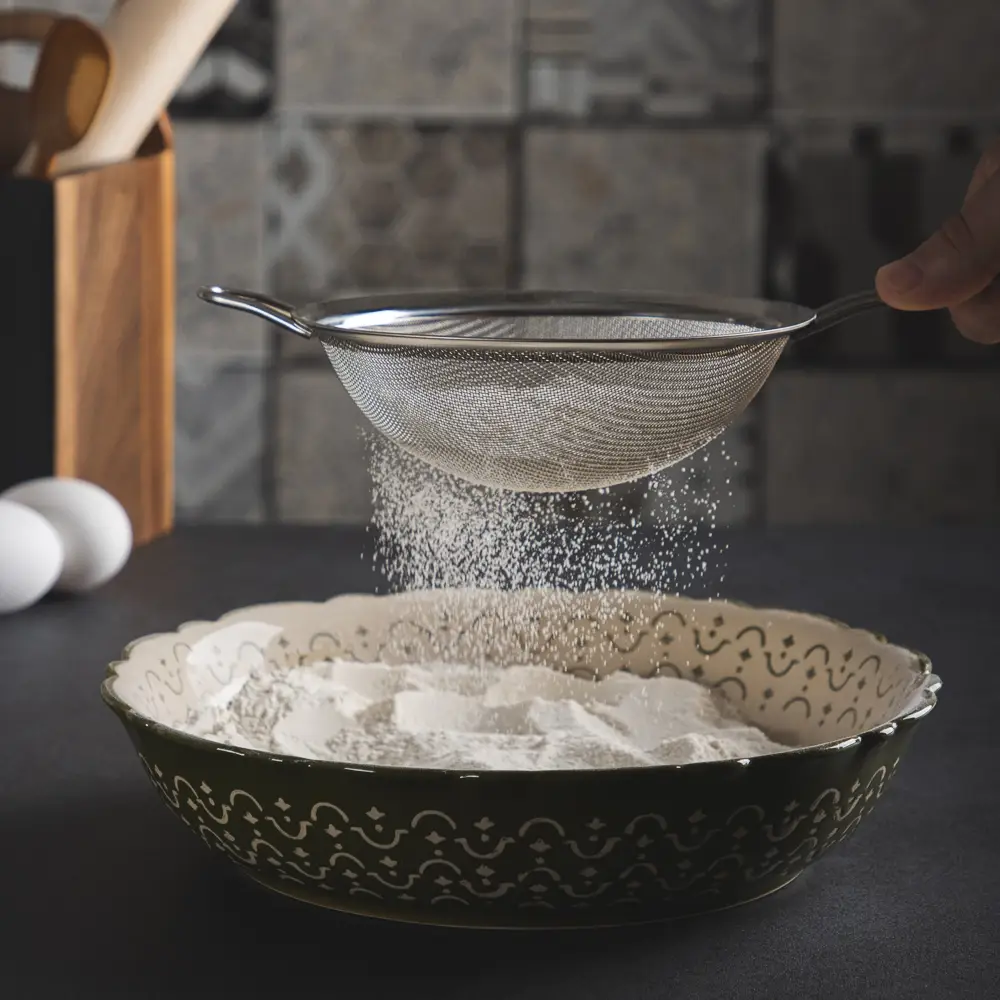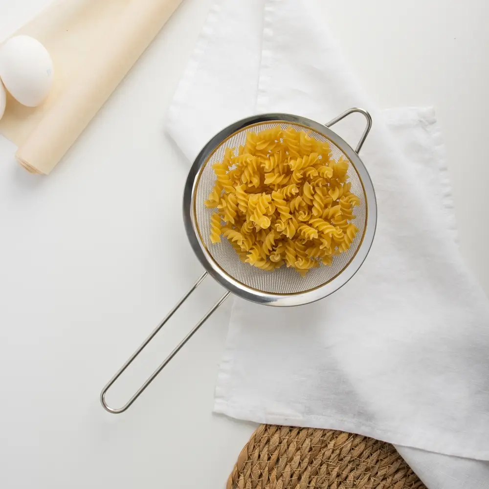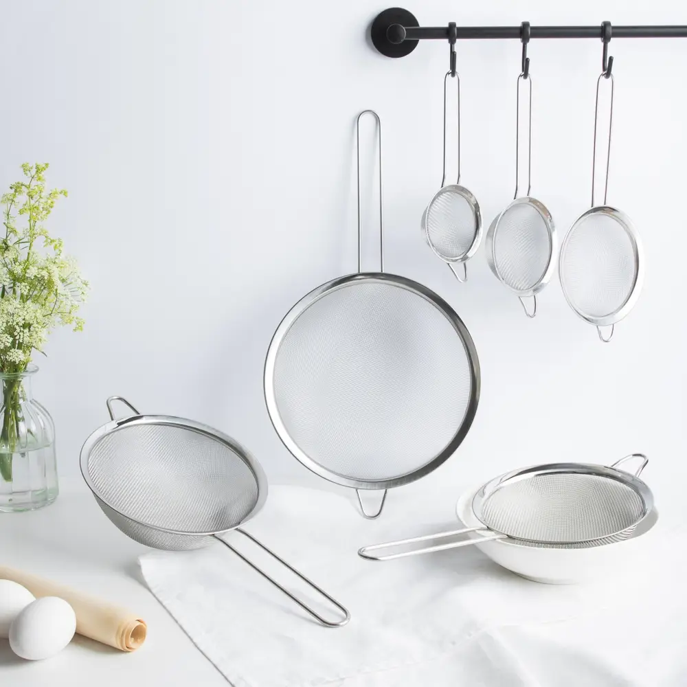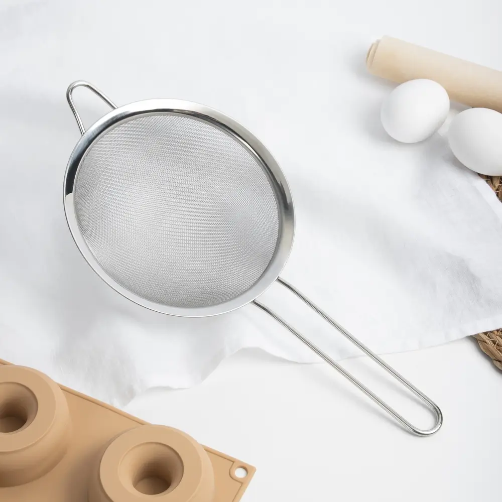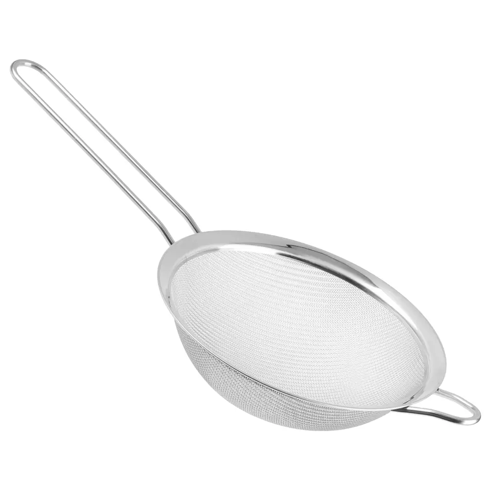 Сито с ободом и ручкой VETTA, диаметром 16 см, изготовлено из прочной нержавеющей стали, надёжный помощник на любой кухне. Идеально подходит для процеживания соусов, молока, бульонов, отвара или для просеивания муки и сахара. Мелкая сетка эффективно задерживает даже мельчайшие частицы, а широкий обод обеспечивает удобное положение сита на краю кастрюли или миски. Удобная длинная ручка позволяет уверенно держать сито во время работы, не обжигаясь, а её эргономичная форма ложится в руку без усилий. Легкое, гигиеничное, устойчивое к коррозии и легко моется.