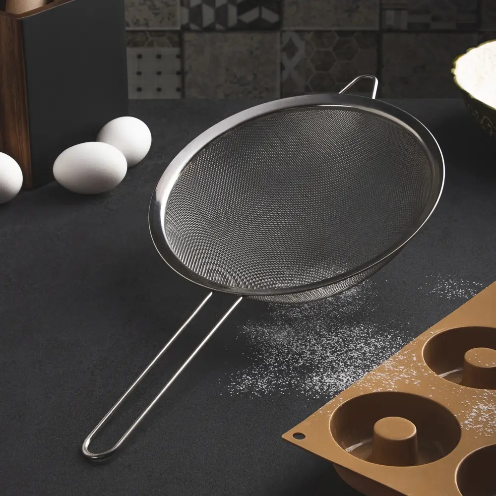 Сито из нержавеющей стали для фильтрации различных ингредиентов - от просеивания муки до процеживания чая от чаинок. Отлично выполняет свою функцию. Ситечко займет достойное место на вашей кухне.