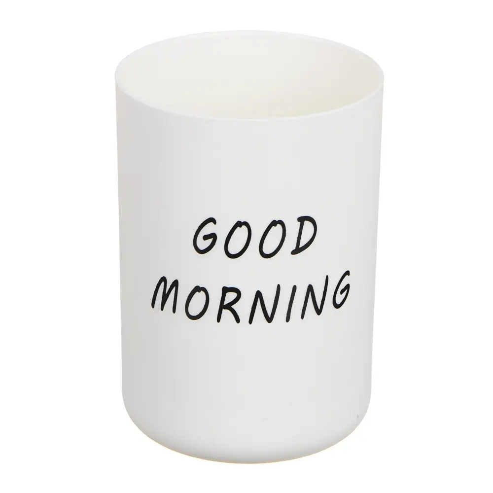 Любая мелочь при оформлении интерьера привносит свою изюминку. Стакан для ванной комнаты Vetta «Доброе утро» – это стильный и лаконичный аксессуар для хранения зубных щеток и паст. Устойчивый стакан не боится влаги, легко моется и не теряет вид с течением времени. Благодаря своему сдержанному дизайну и классической расцветке впишется в интерьер любой ванной комнаты. Внимание! Товары представлены в ассортименте, выбор цветов или моделей не предоставляется.