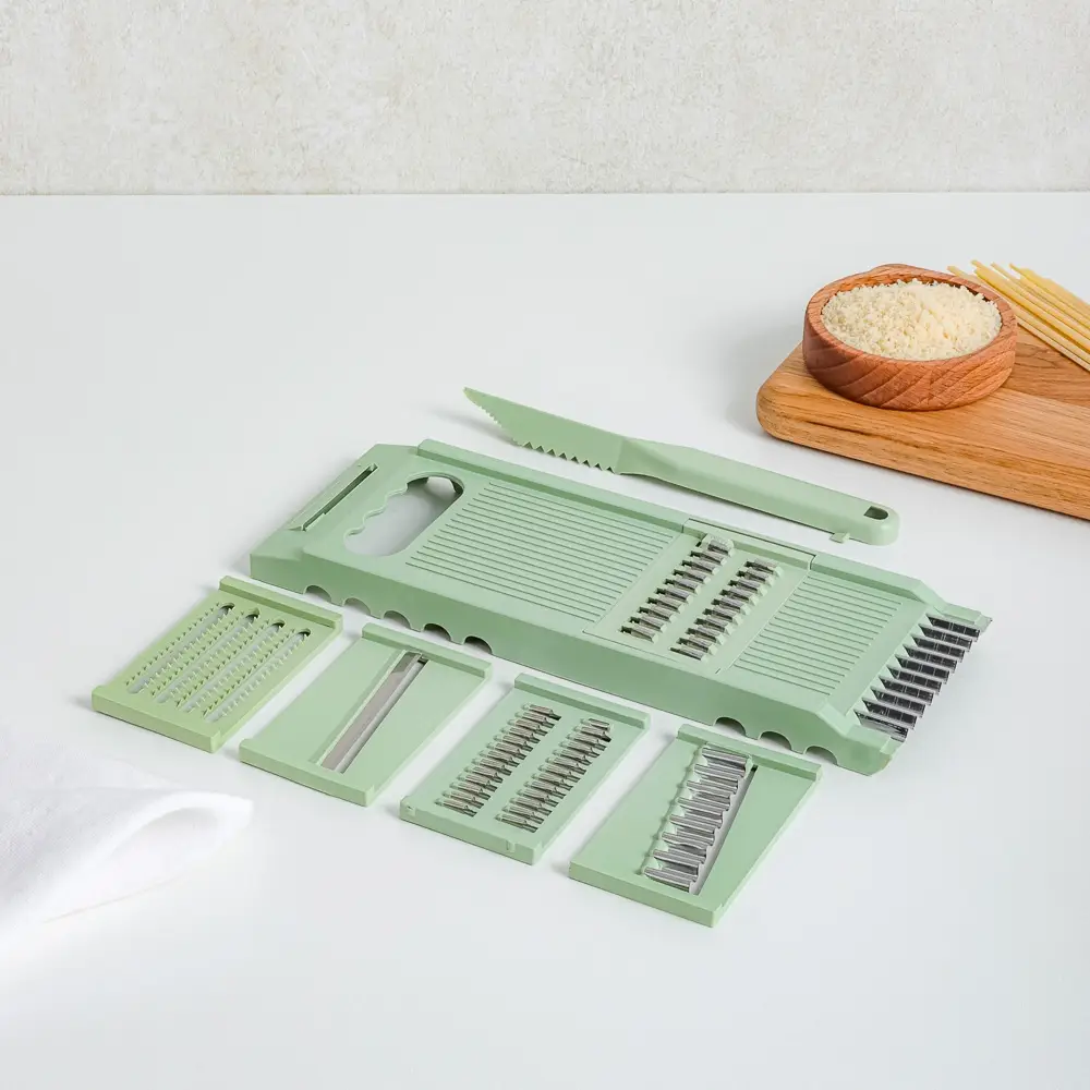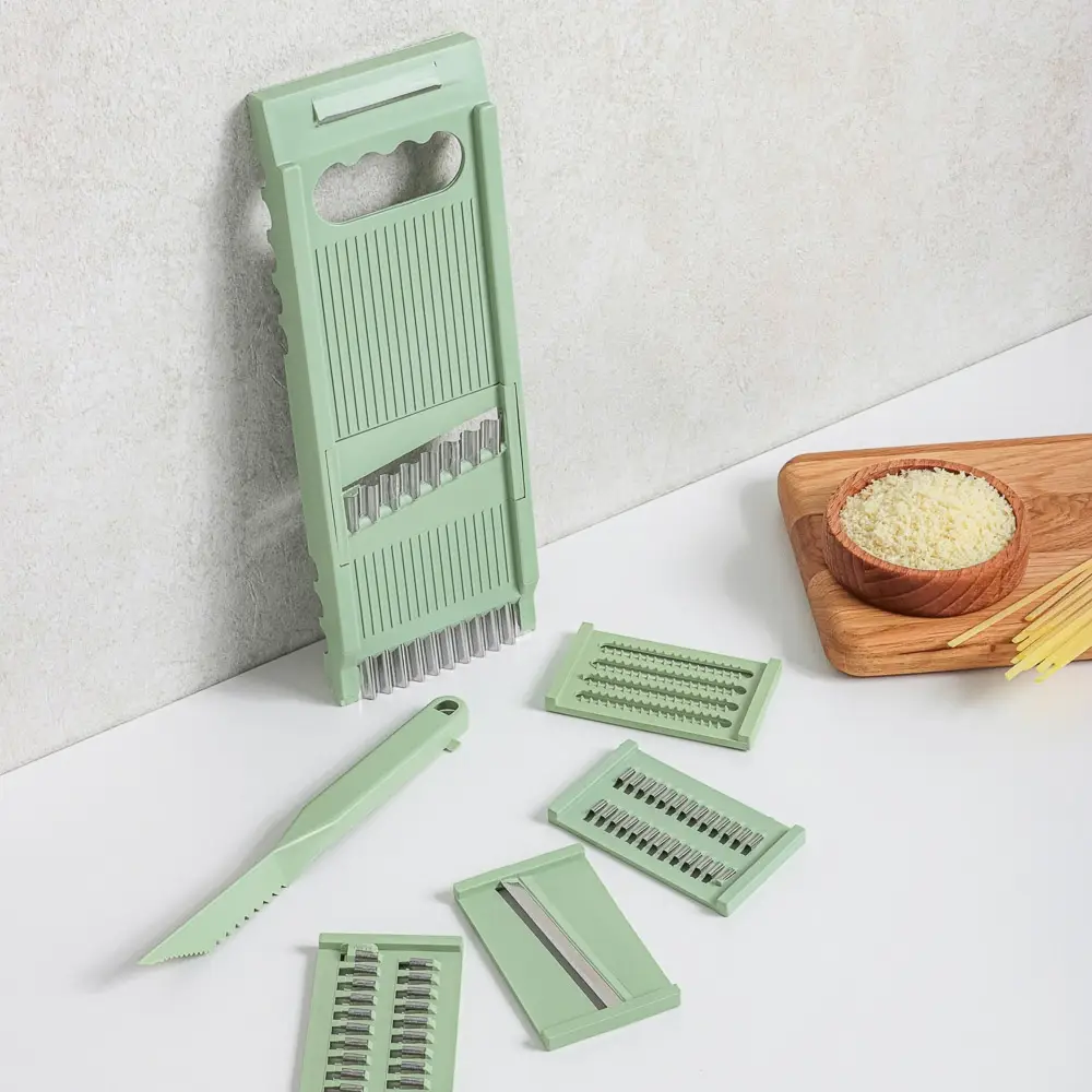 Надоело нарезать овощи ножом? Представляем многофункциональную терку из 7 предметов, которая выведет вашу кулинарную жизнь на новый уровень. Теперь вы сможете легко шинковать капусту для борща и салатов, а также делать морковь по-корейски. Овощи нарезаются быстро и ровно, а главное — безопасно.