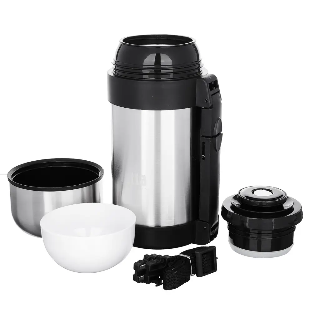 Термос VETTA объемом 1 л с широким горлом позволяет насладиться вкусным обедом посреди активного рабочего дня. Аксессуар удобно брать на пикник на природе и туристический поход. Надежный корпус и герметичная крышка хорошо удерживают тепло, поэтому обед сохраняет температуру долгое время.
