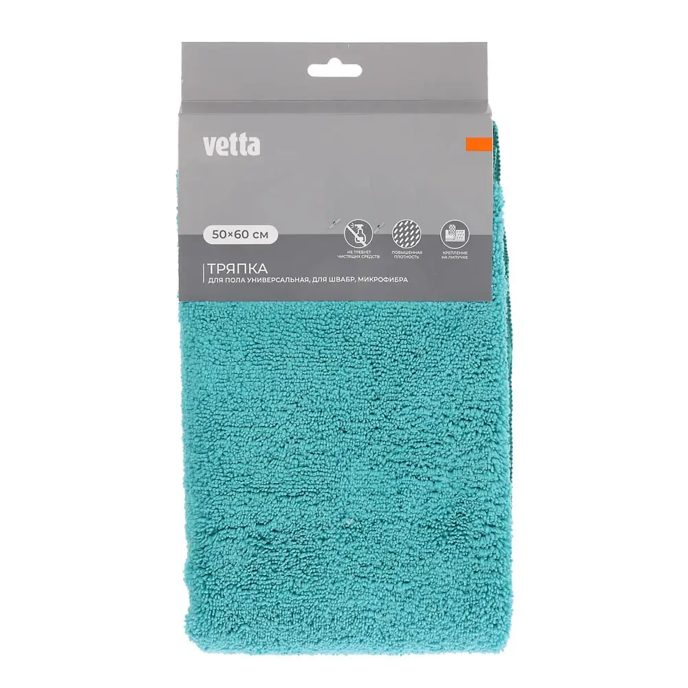 Универсальная тряпка для пола на липучке VETTA для швабр размером 50х60 см сделает процесс мытья пола более быстрым, а результат – более качественным. Тряпка имеет высокую плотность 400 г/м2 и оптимальную высоту ворса. Эффективно собирает и удаляет загрязнения, впитывает влагу, не образуя застоявшейся воды на напольном покрытии. Не требует использования чистящих средств, не оставляет разводов, легко отстирывается и отжимается, быстро высыхает. Надежно фиксируется на швабре при помощи липучек.