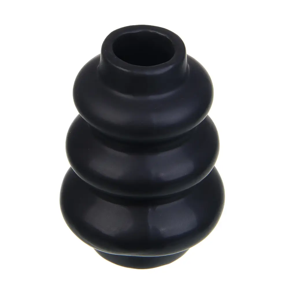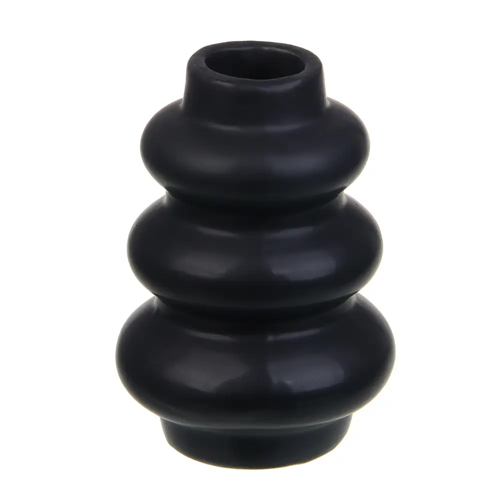 Компактный размер (12x8x8 см) делает этот вазон идеальным выбором для размещения в самых маленьких помещениях. Он прекрасно впишется в интерьер ванной комнаты, на рабочем столе или на полке. Овальная форма и выпуклые линии вазона создают современный, минималистичный образ, который легко вписывается в любой интерьерный стиль. Высококачественная керамика обеспечивает долговечность изделия и сохраняет его безупречный внешний вид на протяжении долгого времени. Материал устойчив к влаге, что особенно важно при использовании в ванной комнате. Глубокий черный цвет придает вазону роскошный и элегантный вид, создавая стильные акценты в интерьере.