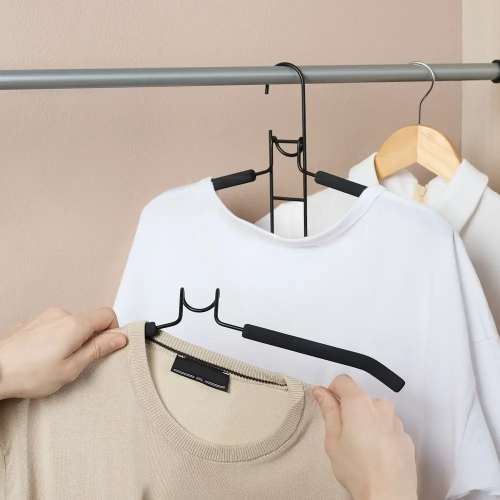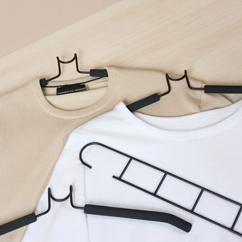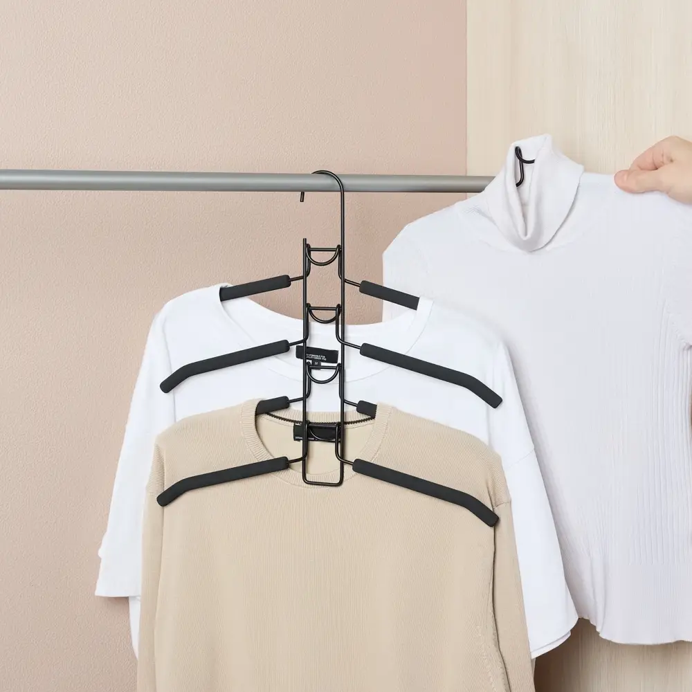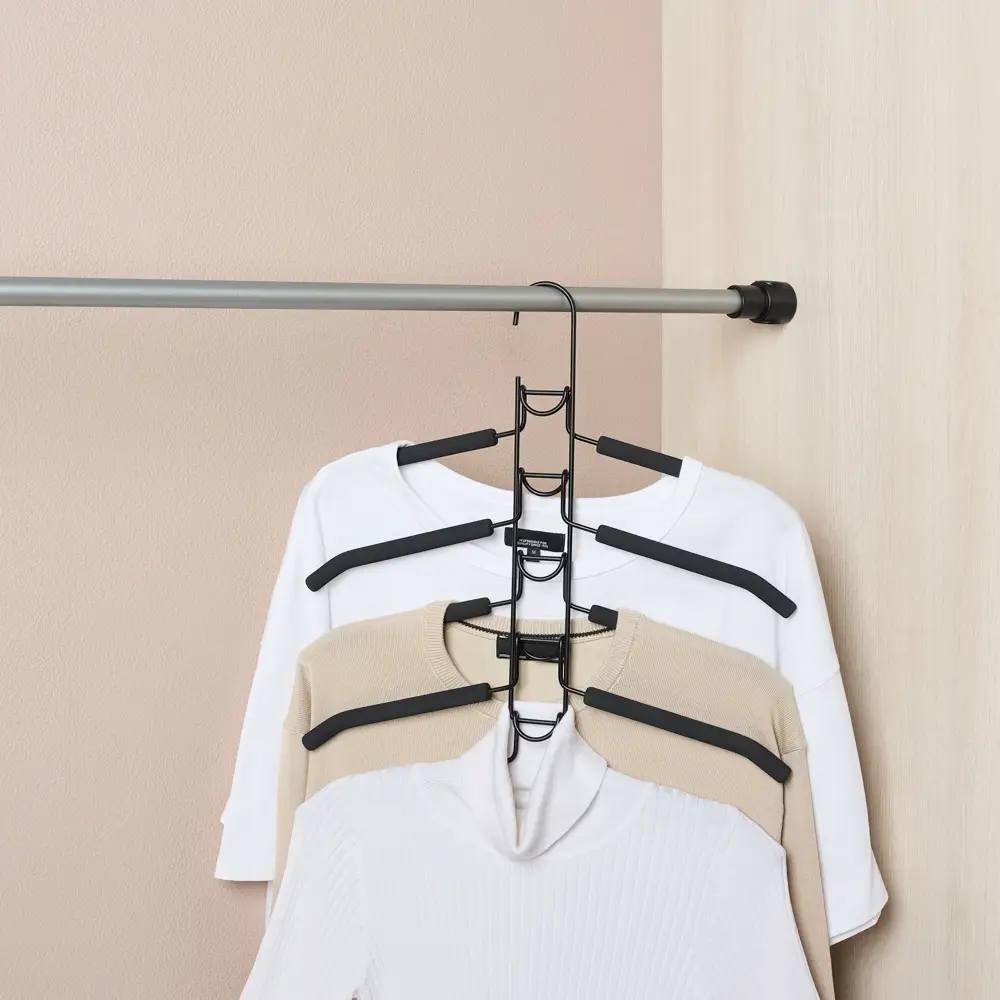 Вешалка-плечики VETTA с покрытием из вспененного ПВХ идеальны для рубашек и блузок. Обеспечивает удобство и экономию пространства шкафа или гардеробной. Идеальна для небольших шкафов, фактически заменяет 5 вешалок, но при этом занимает меньший объем. Вешалка изготовлена из металла с покрытием из вспененного ПВХ. Предназначена для бережного хранения одежды. Долговечная и прочная. Эстетична, отлично вписывается в общий интерьер гардеробной. Стильный черный цвет.