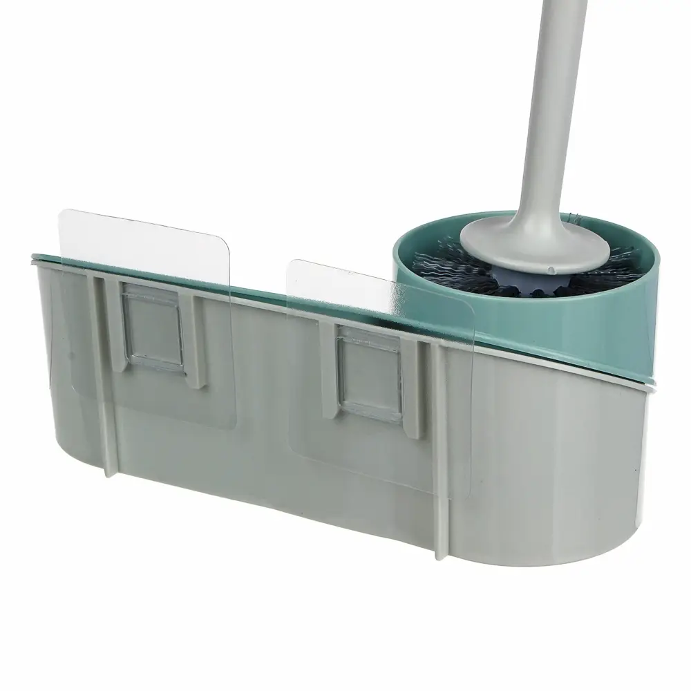 Ёрш для туалета с подставкой для бытовой химии VETTA с креплением на стену поможет поддерживать чистоту в уборной, а также организовать пространство для хранения чистящих средств. Классический ерш эффективно справляется с уборкой, а благодаря наличию подставки для бытовой химии необходимые средства всегда будут под рукой. Двойное крепление на стену на самоклеящейся основе надежно фиксирует изделие, поэтому оно не будет ездить по полу. Доступно 2 дизайна.