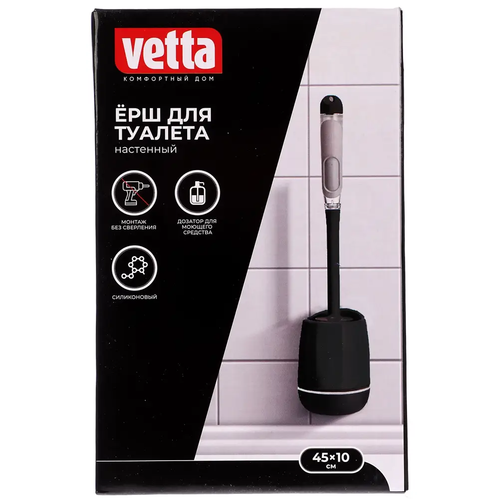 VETTA Ёрш для туалета силиконовый с ёмкостью для чист.средства, крепл.на стену, полипропилен, 45х10с