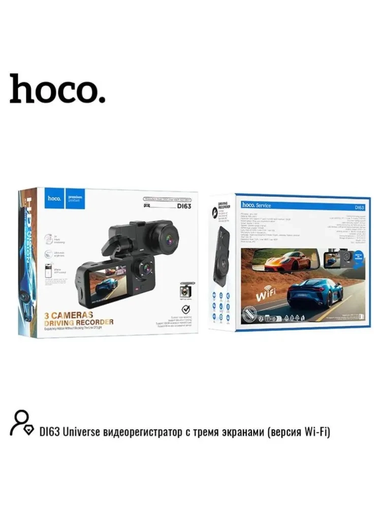 Видеорегистратор Hoco Di63 WiFi 3 камеры - это надежный спутник для вашего автомобиля, который обеспечит безопасность и комфорт в любых дорожных условиях.