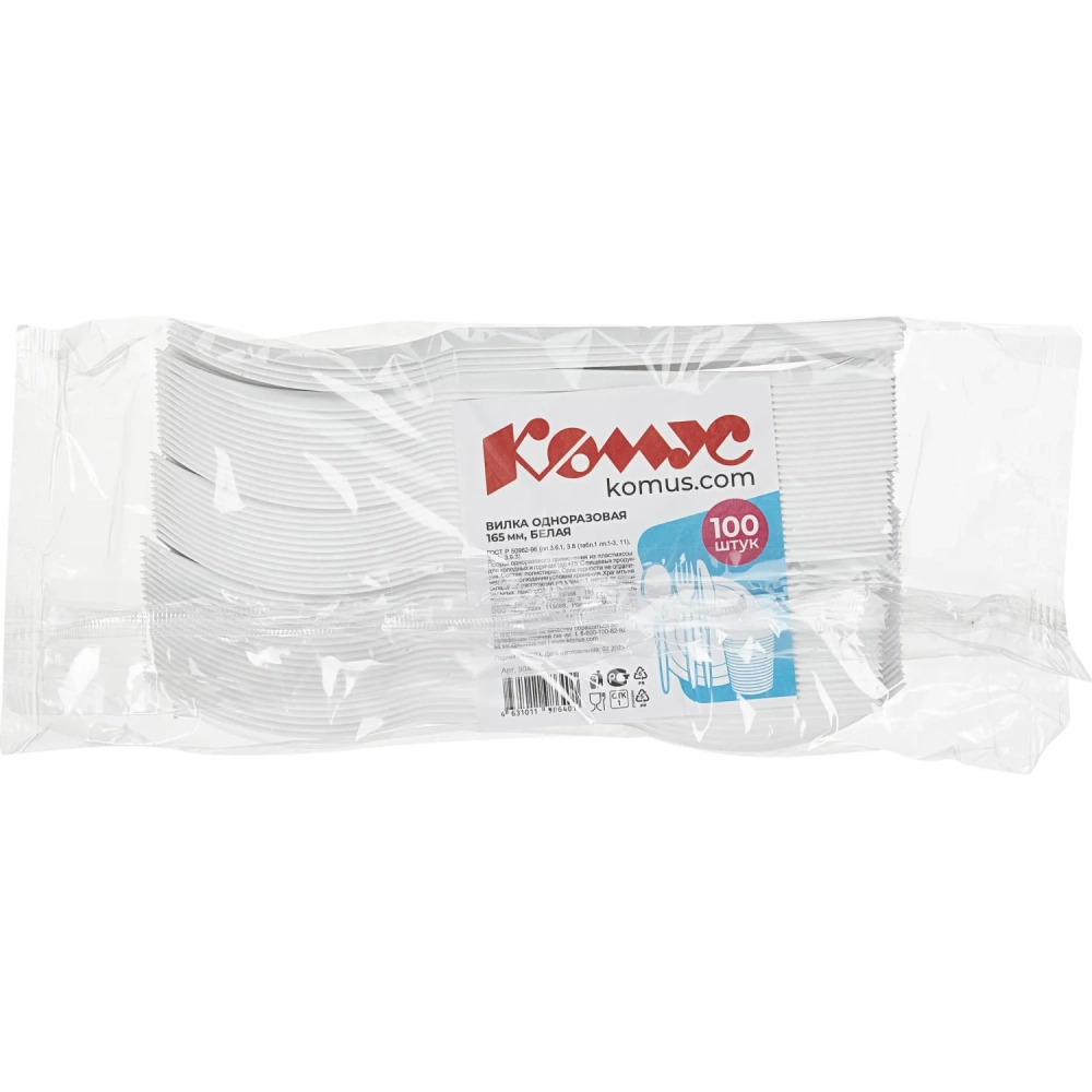 Вилка одноразовая 165мм, белая, КОМУС ПС 100шт/уп